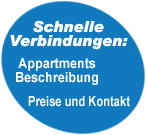 Jeden Appartement hat: Kueche mit Zahl der Kochtoepfe, Glaeser und Tassen sowie das Geschirr entspricht der Anzahl der Personen (2+1 und 3+1), Bettzeug und Handdusche, Gaskocher, Geschirrspueler, Kuehlschrank, Badezimmer mit Badewanne oder mit Dusche und WC, Balkon oder Terrasse mit Tisch und Stuehle, Klimaanlage, TV, SAT-TV, Sondereingang, Buegeleisen, Fen, Kaffeemaschine, Ventilator, Waschmaschine und Telefon (nach Absprache). Rauchen im Appartement erlaubt.Grillen im Freien.